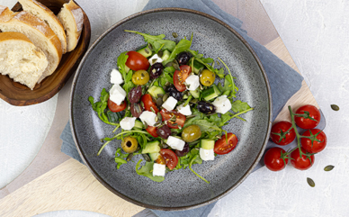 A crisp, fresh salad of Greek-style white plant-based cheese made with AkoPlanet™ PBC 110-44